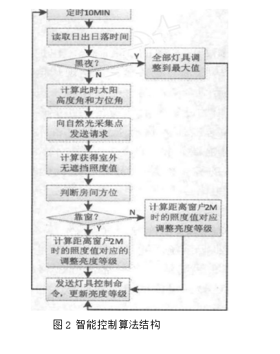 (1)隨著戶外自然光照強(qiáng)度的上升:戶內(nèi)人工照明燈具的亮度將隨之降低,反之,戶外自然光強(qiáng)度下降,戶內(nèi)照明燈具的亮度將升高。(2)根據(jù)太陽(yáng)位置以及東升西落的特點(diǎn)對(duì)不同朝向的窗邊照明的影響,人工室內(nèi)照明要做不同權(quán)重的亮度調(diào)節(jié)。(3)戶內(nèi)人工照明實(shí)行梯級(jí)調(diào)光,即根據(jù)燈具與較近窗戶的距離不同而采用不同權(quán)重的調(diào)光。目前采用靠窗與不靠窗兩級(jí)策略。(4)戶內(nèi)燈具根據(jù)燈具類型分為可調(diào)光和不可調(diào)光兩類,前者實(shí)行8級(jí)調(diào)光,亮度等級(jí)隨自然光照明的變化改變。 不可調(diào)光只有開/關(guān)兩種功能,當(dāng)自然光照明低于某閡值時(shí), 則自動(dòng)開啟.