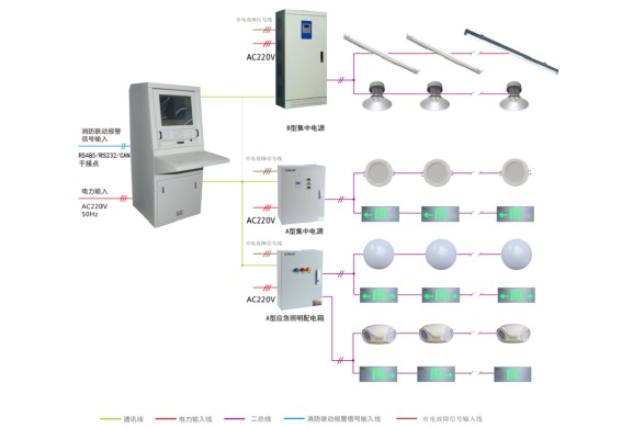 集中控制型: 自帶電源集中控制型 集中電源集中控制型