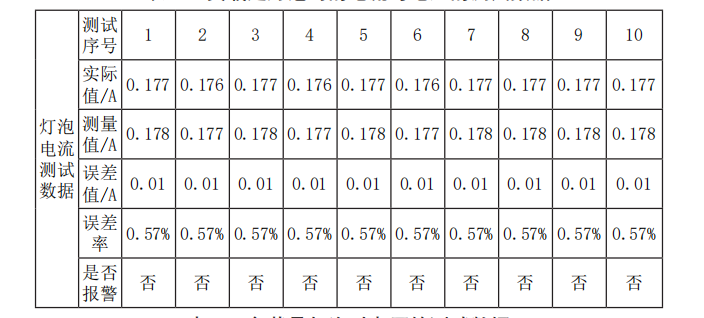 負載是燈泡時的電流與電壓的測試數據,見表4-1;負載是燈泡時電壓的測試數據,見表4-2;負載是吹風機時的電流測試數據,見表4-3;負載是吹風機時的電壓測試數據,見表4-4。
