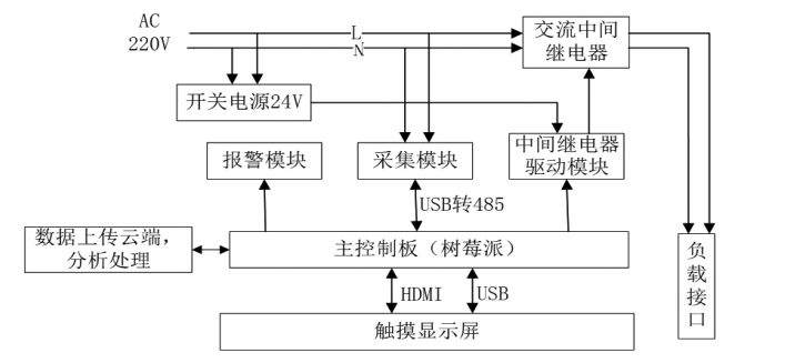 樹莓派作為系統的控制中心,可安裝操作系統并可以直接將所寫的編程運行,卡片主板周圍有USB接口和以太網接口。樹莓派控制所采集的內容以及電路的狀態,將采集到的用電數據進行處理和保存并上傳至云端,當經過數據分析后得出學生使用違規用電器的信息時,樹莓派控制電路斷開。