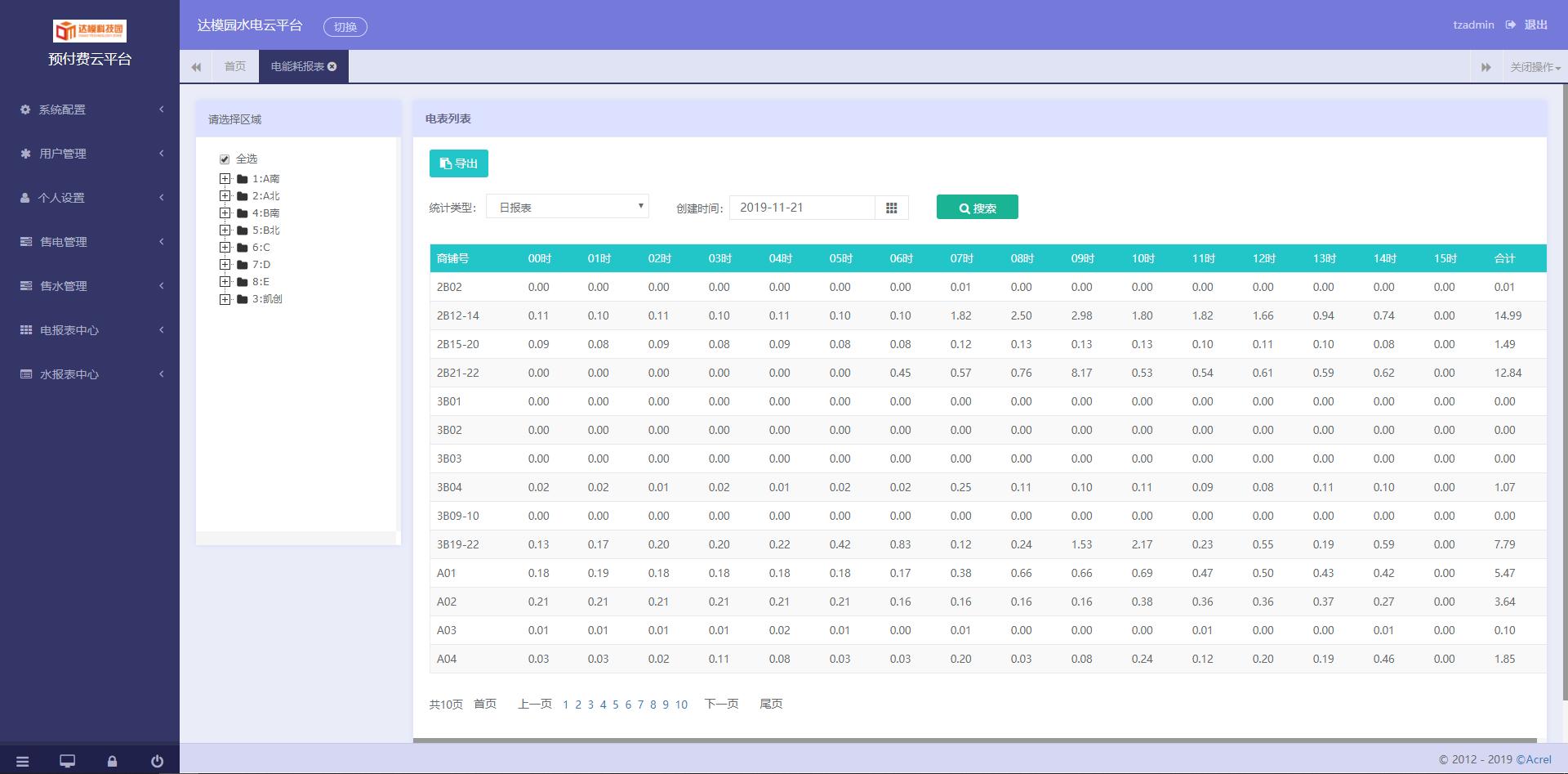 5)報(bào)表中心:提供售電、售水財(cái)務(wù)報(bào)表、用能報(bào)表、報(bào)警報(bào)表等查詢,本系統(tǒng)所有的報(bào)表及記錄查詢,都支持excel格式導(dǎo)出。